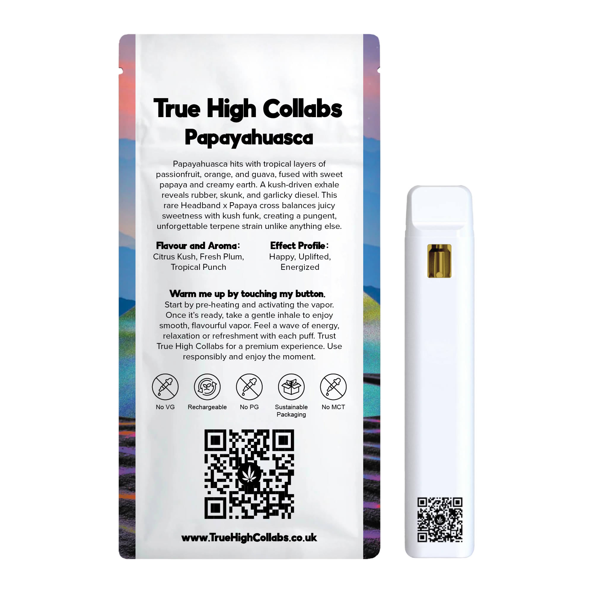 Start by pre-heating and activating the vapor. Once it’s ready, take a gentle inhale to enjoy smooth, flavourful vapor. Feel a wave of energy, relaxation or refreshment with each puff . Trust True High Collabs for a premium experience. Use responsibly and enjoy the moment.